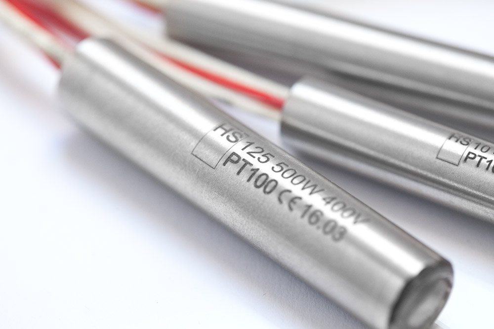 HS-Hochleistungsheizpatronen mit integriertem PT 100-Sensor sind überall dort zu empfehlen, wo für separate Messelemente oder Thermofühler nicht genügend Raum zur Verfügung steht. Bei Heizpatronen mit eingebautem PT 100 befindet sich der Sensor immer im Bodenbereich. Die Umgebung des Messpunktes ist aus technischen Gründen immer unbeheizt. Um ein dadurch auftretendes Temperaturgefälle am Heizpatronenmantel möglichst auszugleichen, wird die Heizpatrone in unmittelbarer Nähe des Messpunktes grundsätzlich leistungsverstärkt.